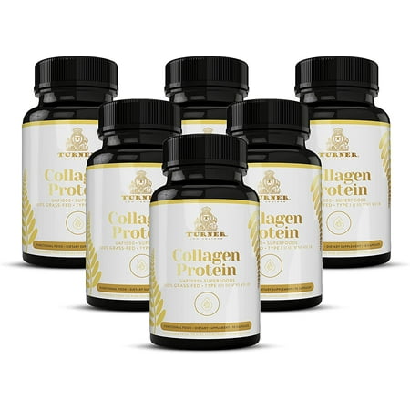 Give your body what it needs to keep up with your active lifestyle using this collagen protein supplement by TURNER. An essential protein for numerous bodily systems collagen helps rebuild joints and cartilage to maintain flexibility and a full range of movement. It s also a powerful hair skin and nails supplement keeping all three strong and looking youthful and vibrant. Stay consistent with workouts and keep up your routine thanks to shorter recovery times as muscles rebuild faster. Sourced from grass-fed cows bovine collagen protein is highly sustainable and free of hormones GMOs and antibiotics. It s also easy to digest so you experience the full range of benefits. This joint health supplement contains seven types of collagen to support the digestive system as well as ligaments skin and fingernails. It also has hyaluronic acid vitamin C and zinc to further support collagen absorption and to strengthen the immune system. This 6-pack has 90 New Zealand collagen capsules for a total of 540. TURNER New Zealand 100% Grass-Fed Protein Collagen Capsules 540 Capsules 6 Count: