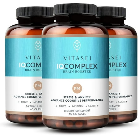 Brain Booster Supplement for Focus Memory Clarity Energy! Research Verified Brain Booster works to support the health of the brain systems as an integrated whole helping to increase its function activity and resilience. Our brain supplements are safe gluten and GMO-free. We use responsibly sourced ingredients known for their benefits on the human mind and the body. Features: Non-Gmo Vegan Naturally Sourced & Scientifically Formulated Gluten-Free No Artificial Flavours Benefits: Enhanced Concentration Boosts Memory Better Sleep Enhaces Mood Healthy Brain Tranquility Carefully Selected Ingredients in our Nootropic Supplement: Ashwagandha (500 mg): Ashwagandha is a medicinal herb that has been used as an adaptogen for ages. It contains chemicals that calm and relaxes your brain. Chamomile extract (600 mg): Chamomile is widely thought to help people relax and fall asleep. Chamomile may increase brain neurotransmitter activity (serotonin dopamine and noradrenaline) and thereby have positive effects on mood. Pyridoxine HCL (20 mg): Pyridoxine HCL is the hydrochloride salt of pyridoxine (vitamin B6) and it plays an important role in the body. Pyridoxine is essential to maintain the nervous system immune system and red blood cells. Suggested Use: Adults take 2 capsules daily 30 min prior to a meal or as directed by your healthcare professional. Package Includes: 3 X VITASEI IQ Complex PM Brain Booster Supplement (60 Capsules)